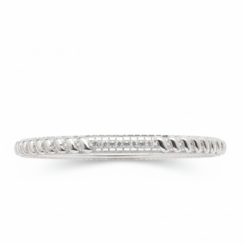 A rigid, circular bangle featuring rich textures and symmetrical stone placements.