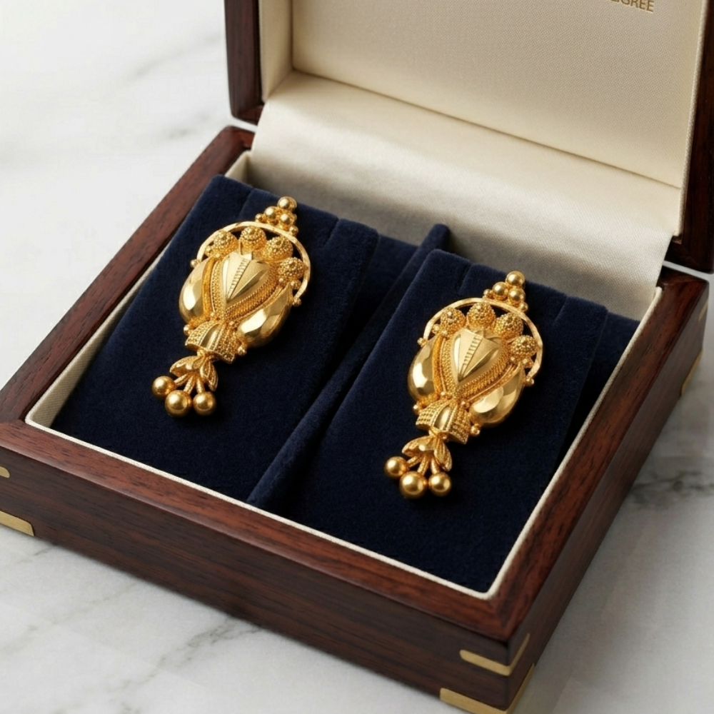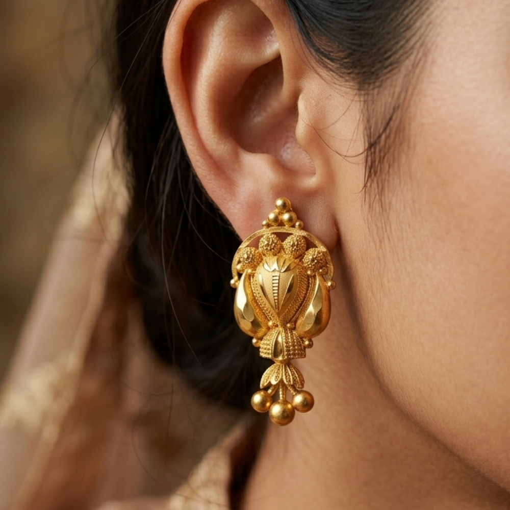 Ornate Cluster Design: The top features a cluster of golden beads surrounded by delicate filigree loops.
