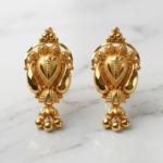 Product Overview Celebrate heritage with these Traditional Gold Heart-Drop Studs. Featuring intricate “Rawa” (beaded) work and a feminine heart-shaped pendant, these earrings are a masterclass in ethnic craftsmanship.