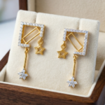 Product Overview Celebrate heritage with these Traditional Gold Heart-Drop Studs. Featuring intricate “Rawa” (beaded) work and a feminine heart-shaped pendant, these earrings are a masterclass in ethnic craftsmanship. They are designed to add a royal touch to your festive wardrobe.