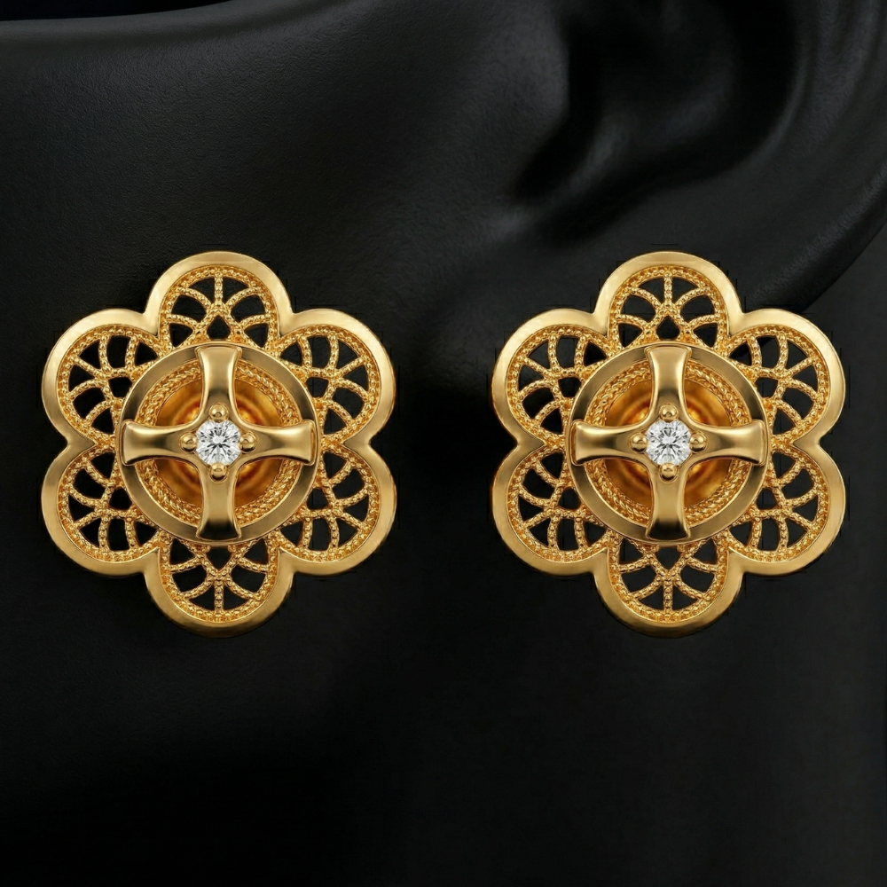 Here is the professional English product long description for these Modern Two-Tone Filigree Geometric Studs: