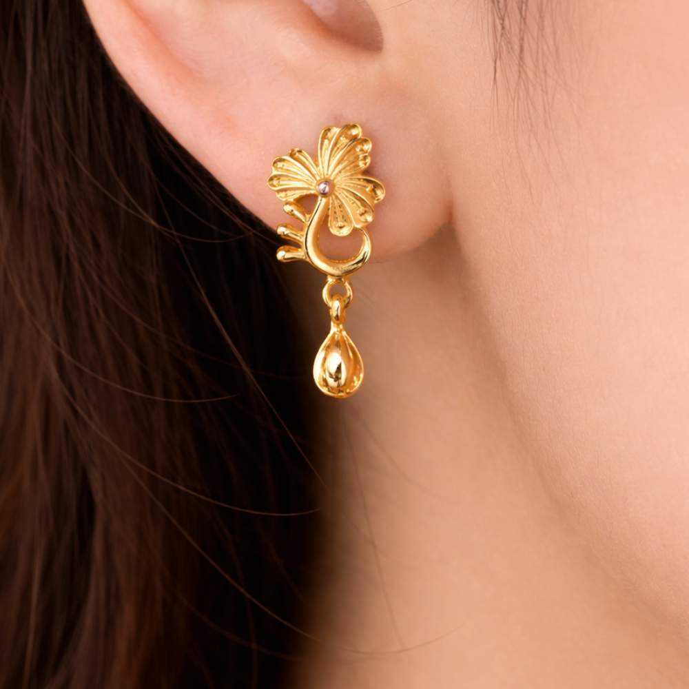 • Artisanal Peacock Motif: The central drop showcases a beautifully carved peacock silhouette with subtle textures and high-polish accents.