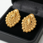 Product Overview A celebration of geometric precision, the Traditional Filigree Mandala Studs feature a rich, domed design inspired by ancient sun motifs. These studs offer a bold, architectural look with a deep golden luster, perfect for festive occasions.