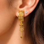 Product Overview Experience the intricate beauty of the Majestic Paisley Leaf Studs, a design that combines the timeless Paisley (Kalki) shape with rich, textured metalwork. These statement earrings are designed to provide a royal aesthetic for high-end traditional events.