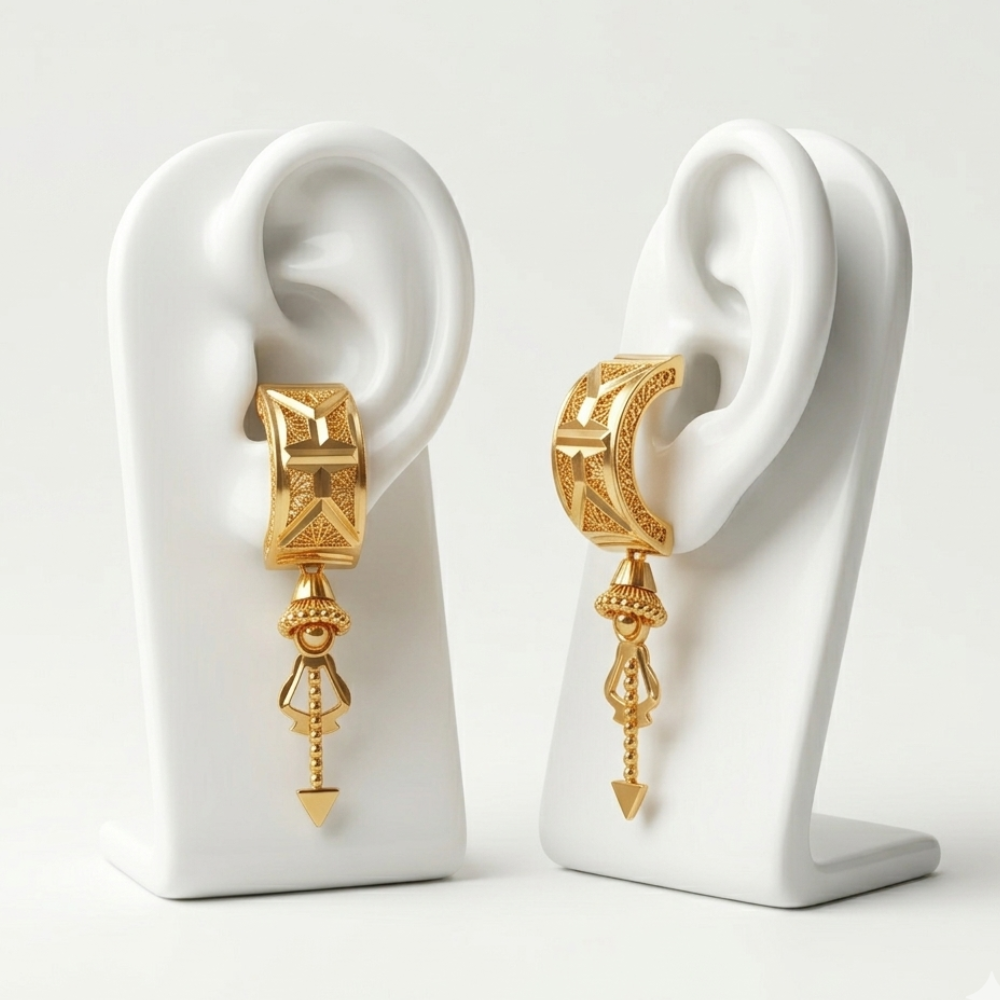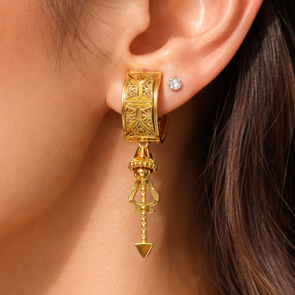 Domed Centerpiece: A smooth, polished golden dome sits at the heart of the earring, acting as a radiant focal point that catches the light from all angles.