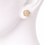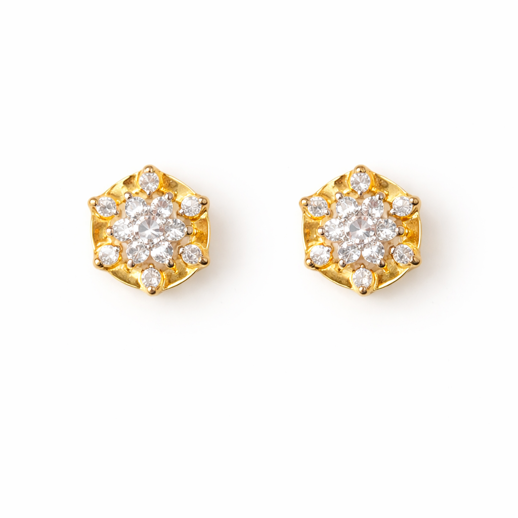 Unique Hexagonal Silhouette: The outer golden frame is sculpted into a modern hexagonal shape with subtle scalloped edges, offering a unique twist on the traditional round stud.