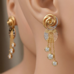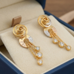 Artistic Swirl Design: Earring ka uper ka hissa ek sundar rose-inspired swirl (ghumerdar) design se bana hai, jo ek modern twist deta hai.