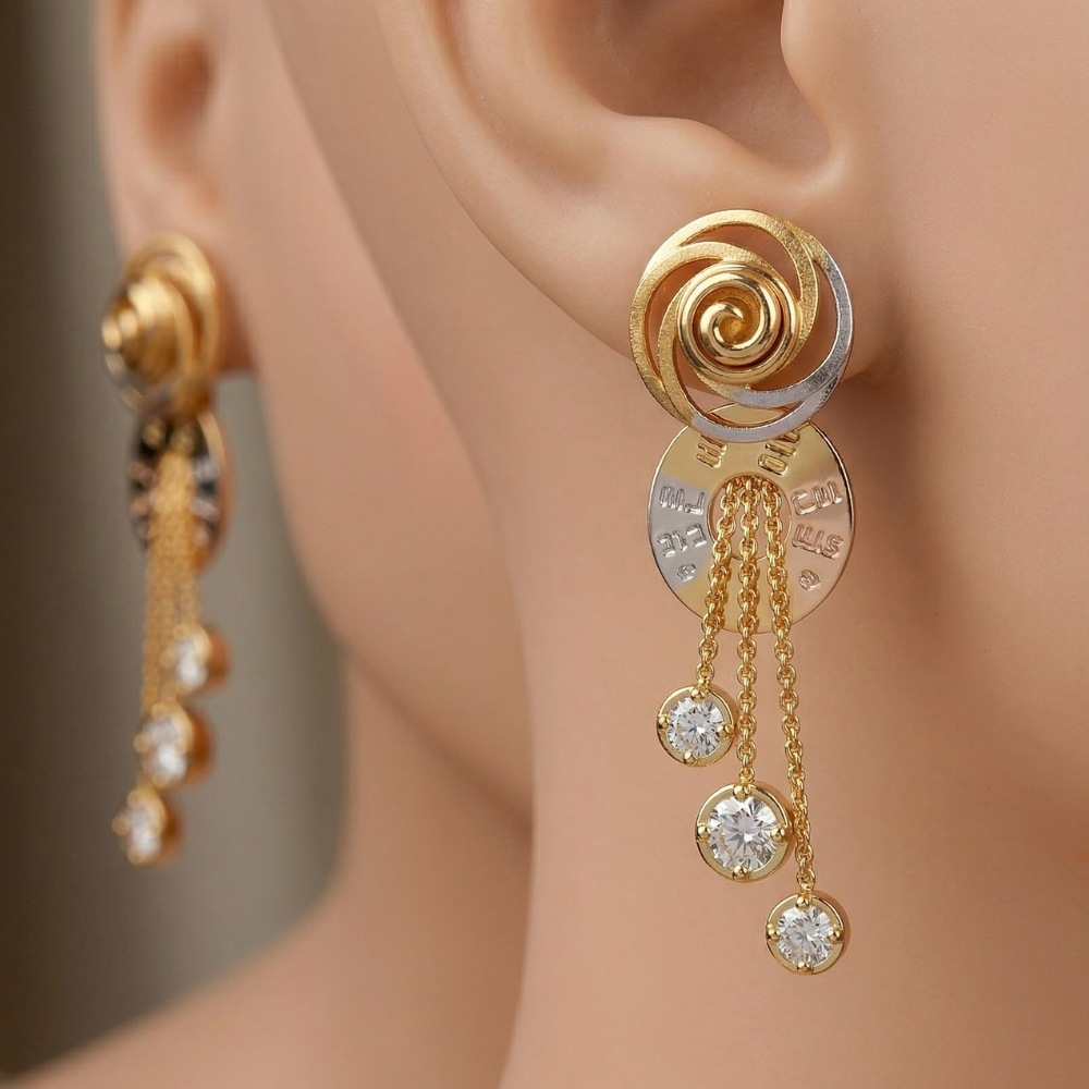Modern Multi-Tone Swirl & Cascade Diamond Earrings