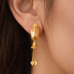 Make a bold and romantic statement with these stunning Golden Geometric Tassel Drop Earrings. Featuring a perfect harmony of structured architectural elements and playful, fluid movement, these earrings are designed for the woman who loves to stand out with elegance.