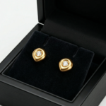 Deep-Set Solitaire Sparkle: At the heart of each golden frame lies a brilliant-cut solitaire crystal. The stone is recessed deep within the setting, allowing the surrounding gold to act as a natural reflector, enhancing the stone’s inner fire.