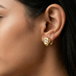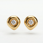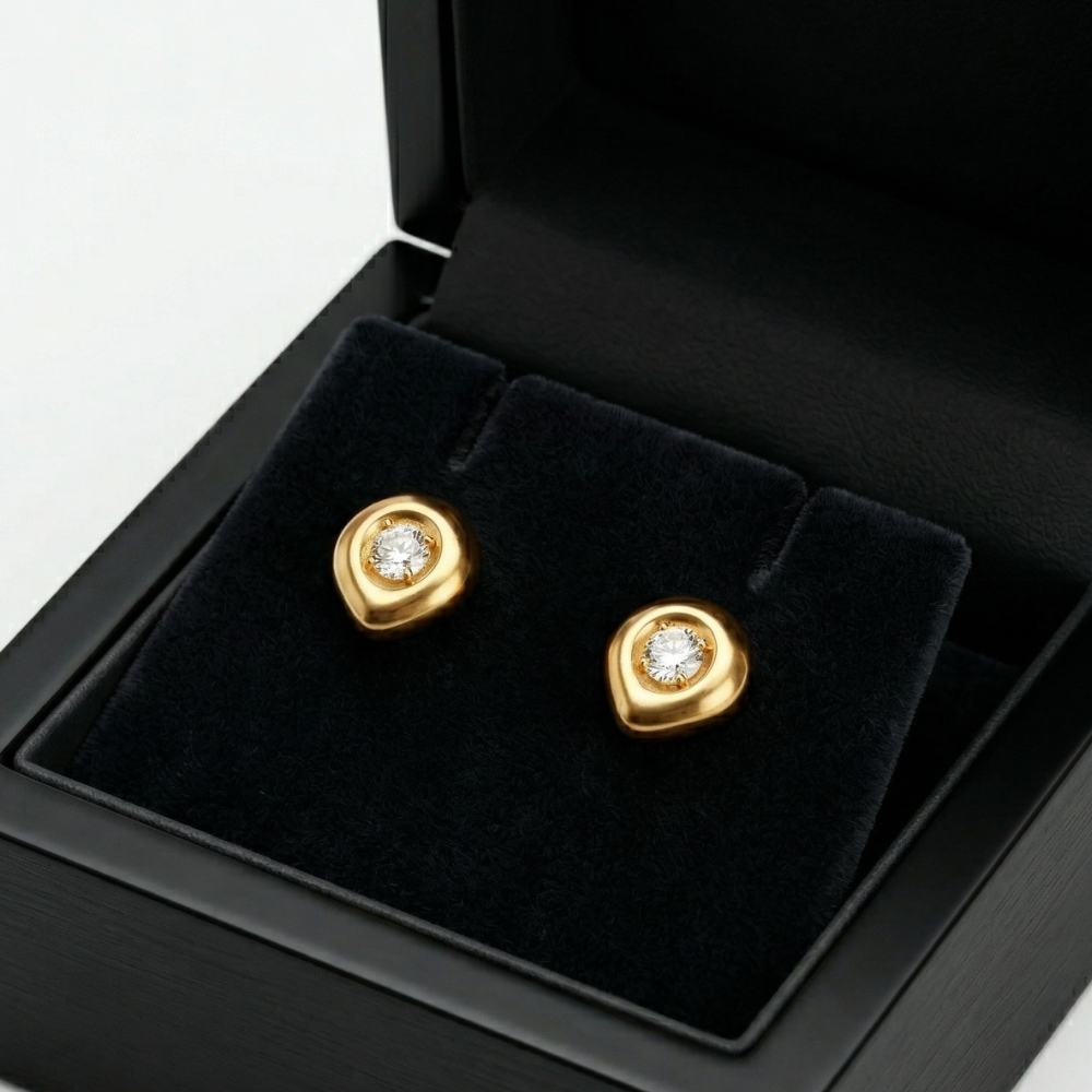 Fluid Organic Silhouette: Moving away from traditional geometric shapes, these studs feature a sculpted teardrop or “pebble” design. The smooth, rounded edges and tapered bottom create a soft, natural look that sits elegantly against the ear.