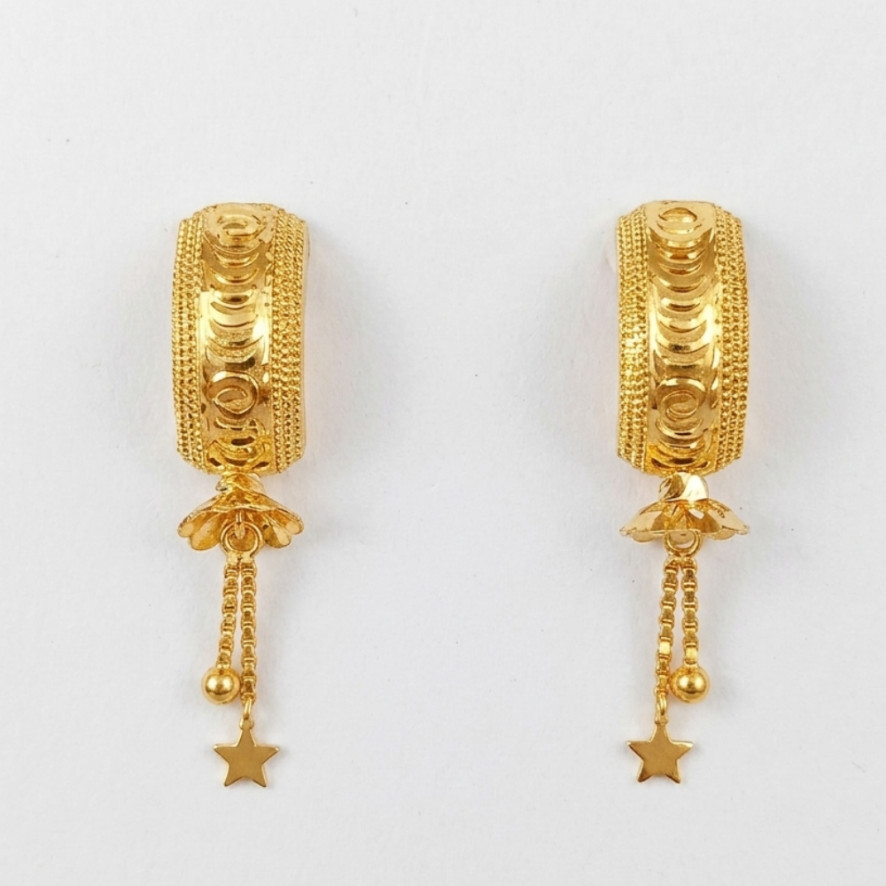 Regal Silhouettes: From majestic sun-kissed dome studs to traditional floral danglers with chime-like golden beads.