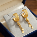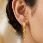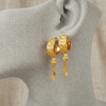 Elevate your ethnic charm with these stunning Traditional Bali Tassel Earrings. A perfect blend of heritage craftsmanship and contemporary flair, these earrings feature a wide, intricately carved “Bali” (hoop) base paired with delicate cascading golden tassels. Designed for the modern woman who cherishes her roots, these earrings are a true statement of grace and luxury.