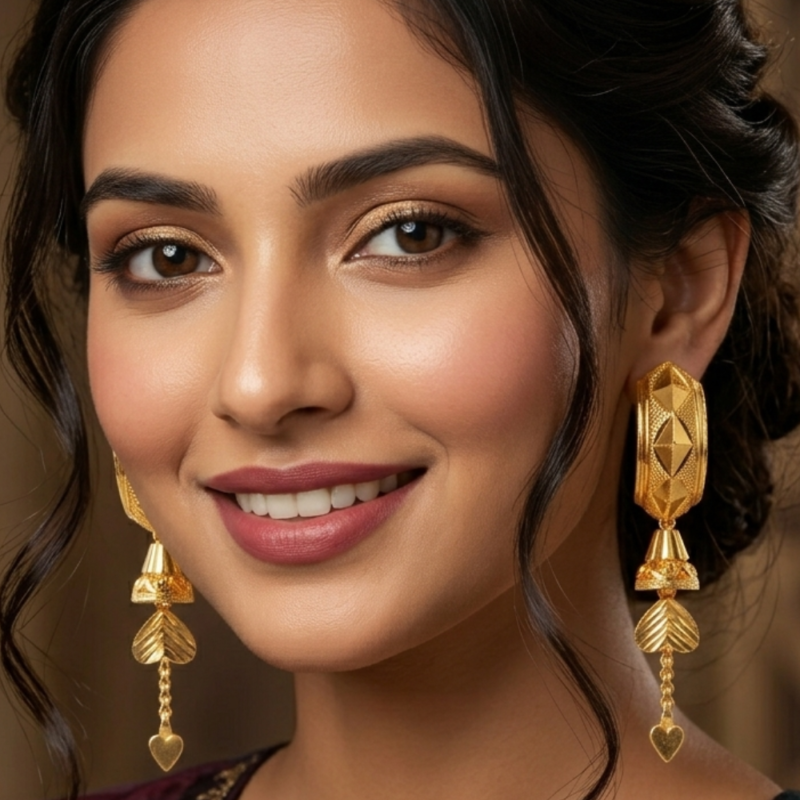 This collection showcases an exquisite range of gold-toned earrings, blending modern geometric precision with timeless traditional artistry. Each piece is designed to offer a unique statement of elegance, whether you are seeking daily minimalism or festive grandeur.