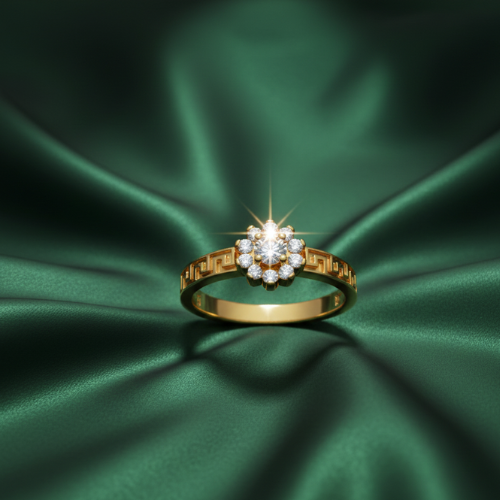 • Greek Key Artistry: The wide gold band is intricately engraved with a classic Greek key (Meander) pattern, symbolizing eternity and strength.