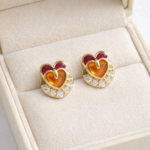 Finished in a rich, antique matte gold polish, these studs offer a dignified, non-reflective glow that feels both authentic and luxurious. The multi-tiered structure creates striking depth and dimension, making them a true statement piece that sits flush against the earlobe. Despite their bold and substantial appearance, they are engineered to be remarkably lightweight, ensuring you can transition from a morning ceremony to an evening reception with absolute comfort. A perfect tribute to a timeless, golden heritage.