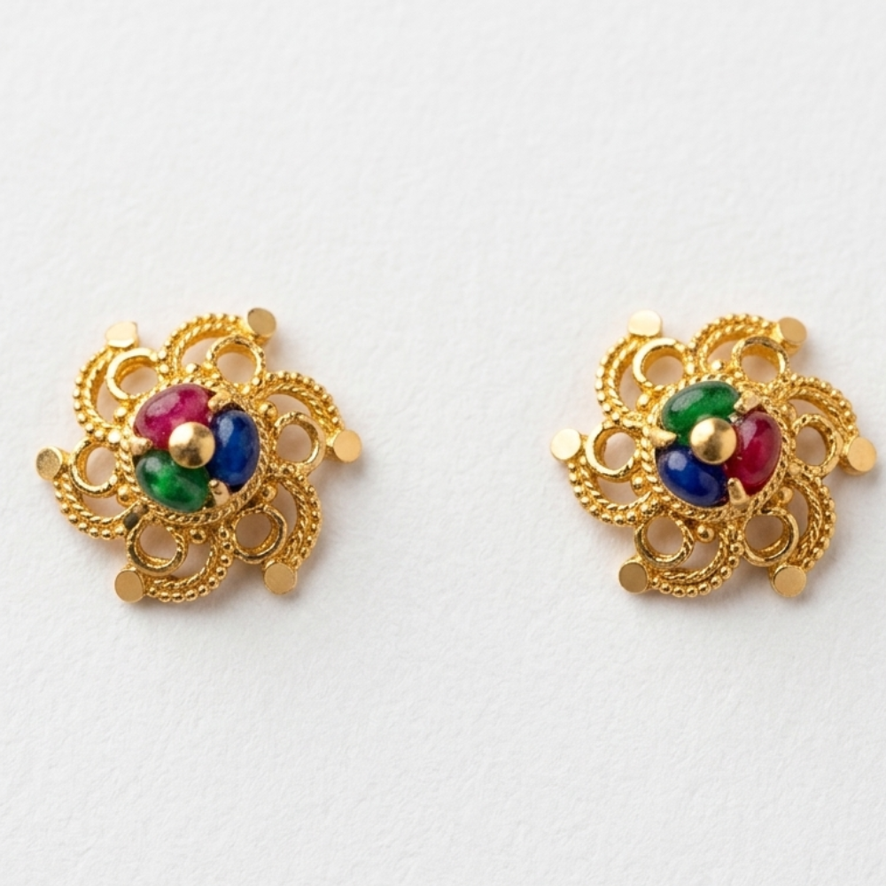 This pair has a very distinctive, geometric floral design. The star-like arrangement of the petals and the precise beadwork give it a balanced, architectural beauty that stands out from typical round studs.