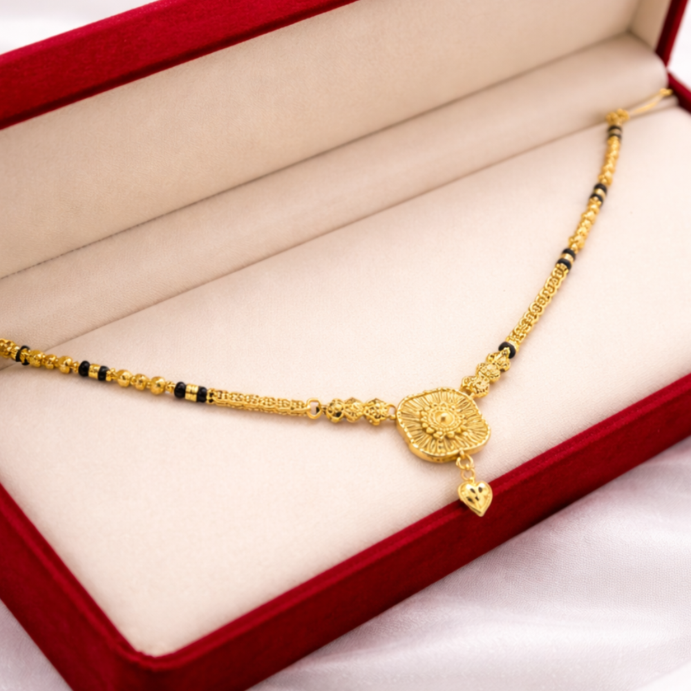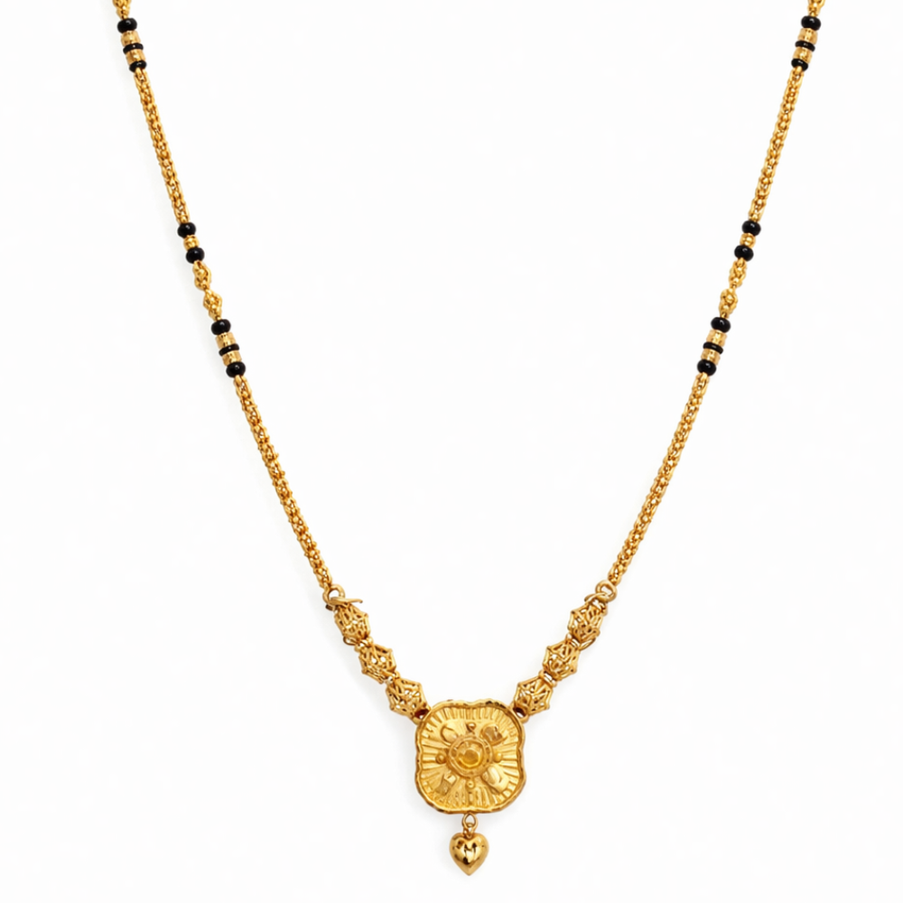 Royal Sunburst Filigree Mangalsutra in 22k Gold with Heart Drop