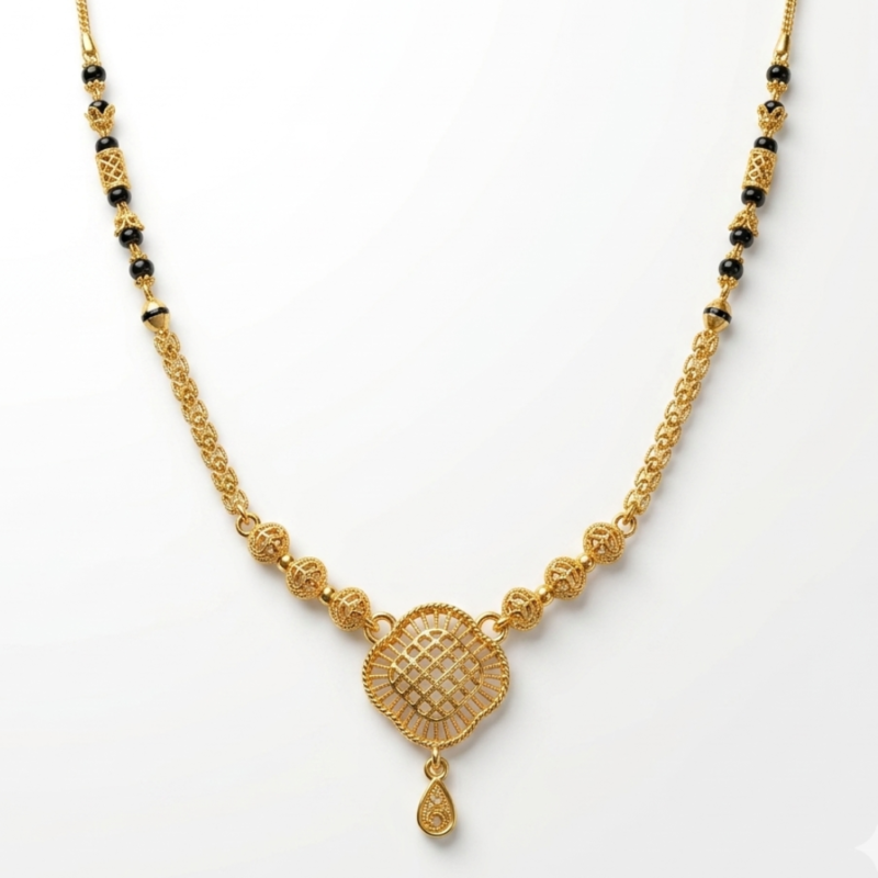 Celebrate the timeless beauty of traditional artistry with this magnificent 22k yellow gold Mangalsutra. Designed for the woman who loves the intricate storytelling of “Royal Heritage” jewelry, this piece serves as a regal statement of grace and marital tradition.
