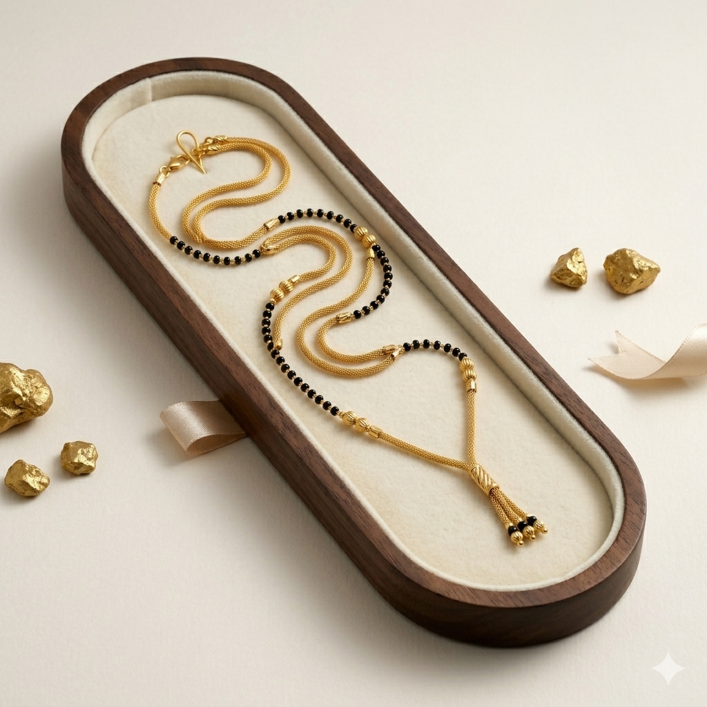 Crafted with a focus on durability and daily comfort, this Mangalsutra avoids the bulk of traditional pendants while retaining all the spiritual significance of the sacred thread.