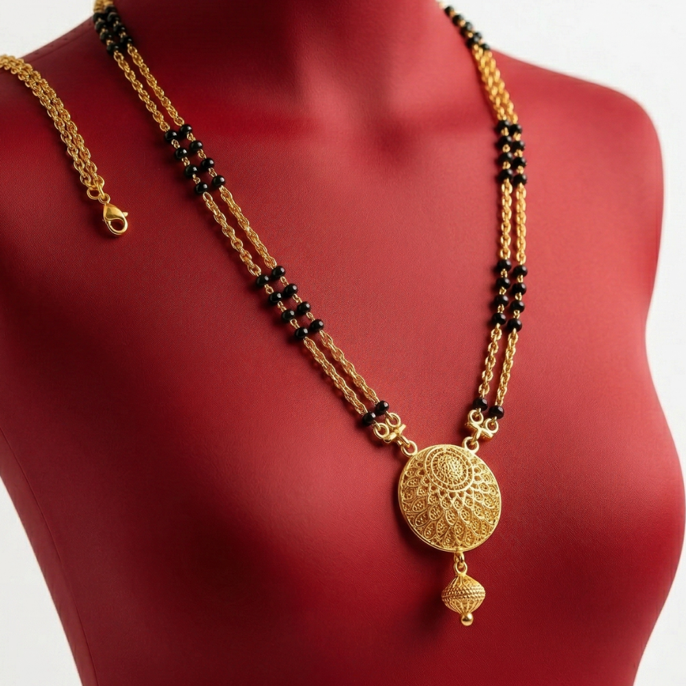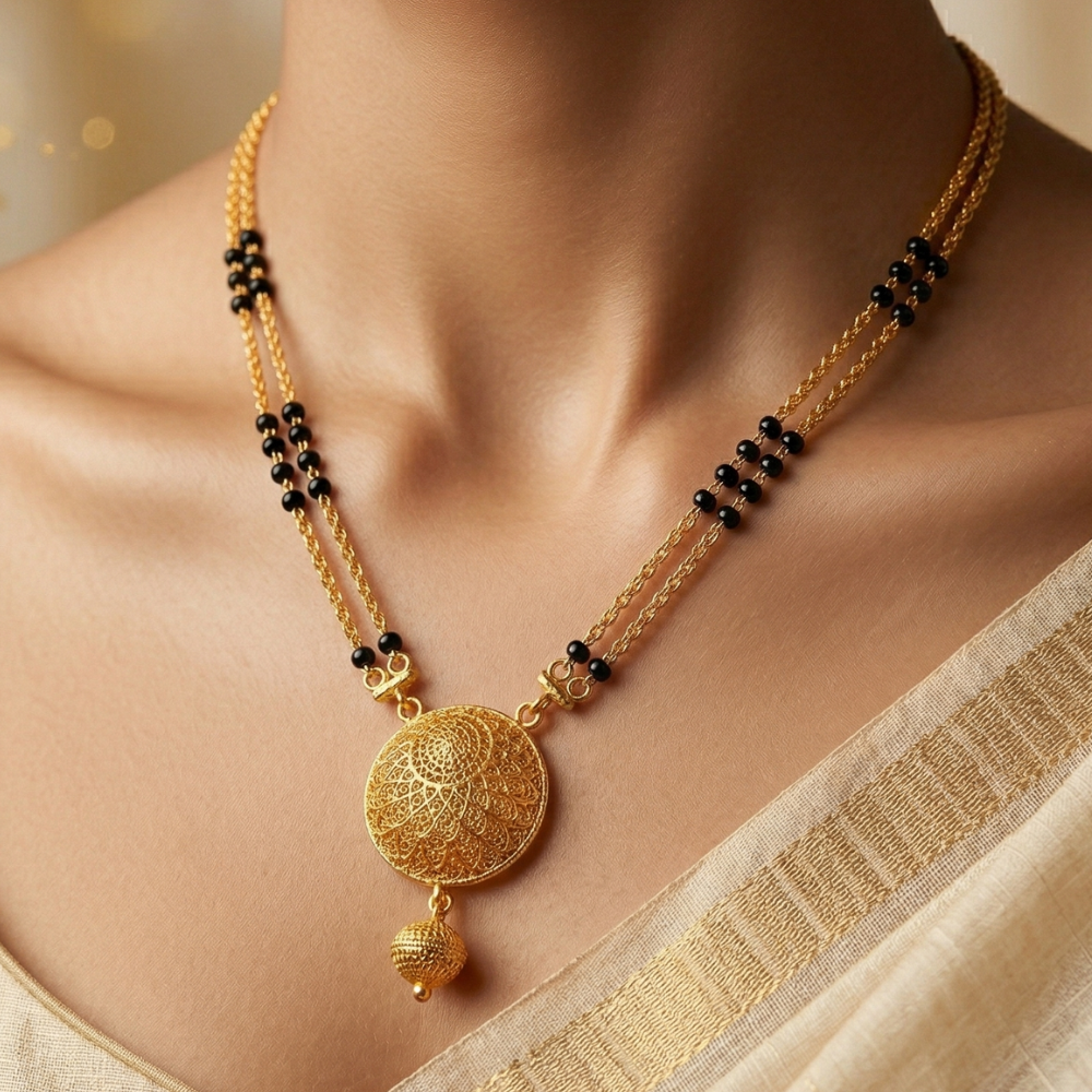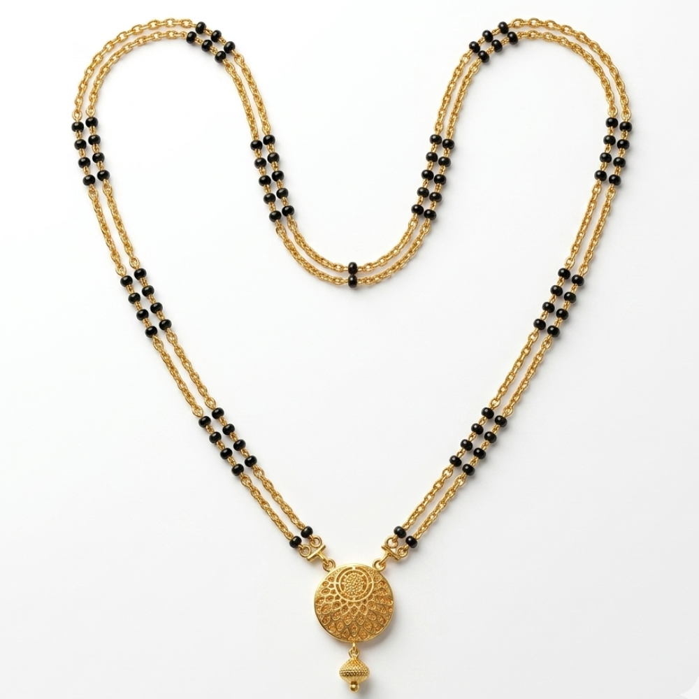 Vintage Filigree Mandala Mangalsutra in 22k Gold with Double-Layered Chain