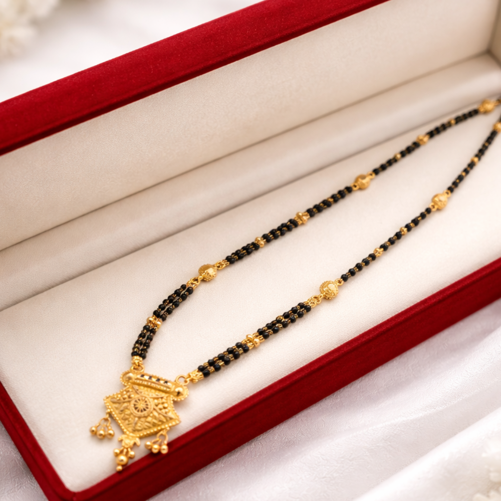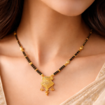 Embody the grandeur of traditional Indian craftsmanship with this majestic 22k yellow gold Mangalsutra. This piece is a celebration of “Royal Heritage” design, featuring a substantial pendant that serves as a masterpiece of ancient jewelry techniques.