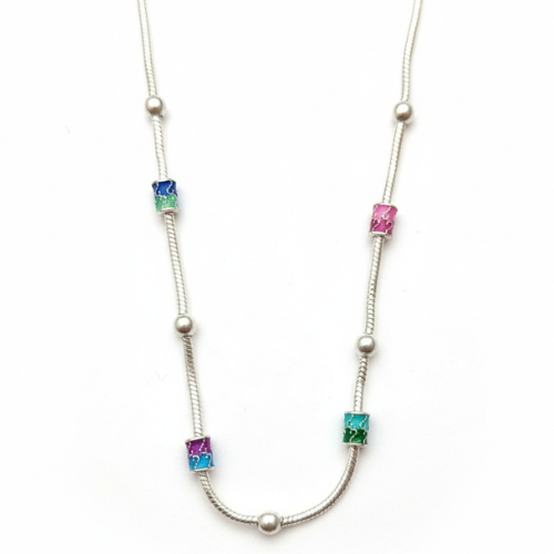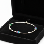 • A Rainbow in Motion: The sleek box chain is punctuated by a series of vibrant emerald green, sapphire blue, and golden topaz inlaid beads, creating a continuous play of light.