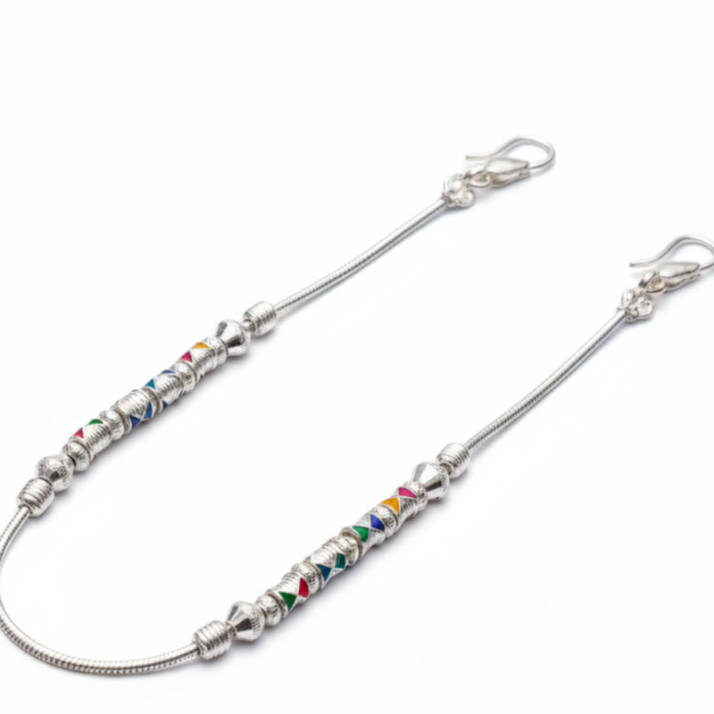 Traditional “Ghungroo” Inspiration: Dainty silver beads hang from the charms, mimicking the classic look of traditional Indian bells and providing a soft, graceful silhouette.