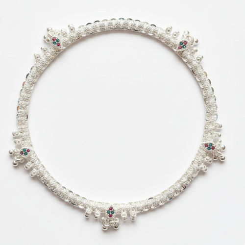 Elevate your every step with the timeless charm of our Traditional Silver-Finish Anklet. Expertly crafted with intricate detailing, this piece is designed for the woman who appreciates the perfect blend of heritage and contemporary grace.