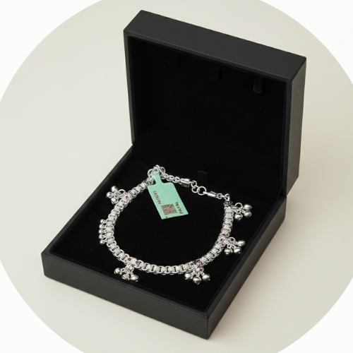 Make a statement that resonates with tradition. This grand, silver-finish anklet is a masterpiece of ethnic design, featuring a bold mesh band and luxurious gemstone-inspired accents. It’s not just an accessory; it’s a piece of art for your feet.