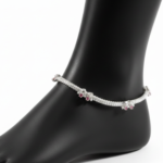 Step into timeless style with our Oxidized Silver Charm Anklet. This piece features a beautifully aged, antique finish that highlights the intricate textures of each link. Adorned with a playful fringe of silver “ghungroo” beads and vibrant ruby-red and emerald-green accents, it offers a pop of regal color against the dark, moody silver.