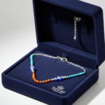 Design & Style: A symmetrical arrangement of beads featuring bright turquoise, fiery orange, and classic silver accents.