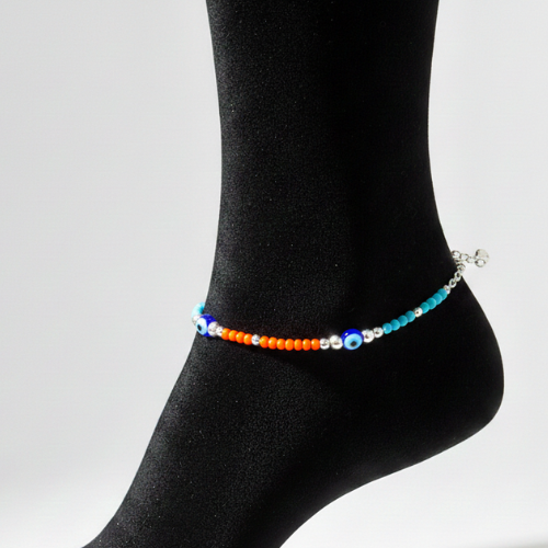 This is a vibrant and modern Evil Eye Anklet (Payal) that blends traditional symbolism with a playful, contemporary aesthetic.