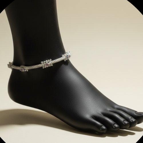 This design is a Sleek Minimalist Silver Anklet with a clean, geometric aesthetic. It is ideal for those who prefer understated elegance and modern jewelry designs.